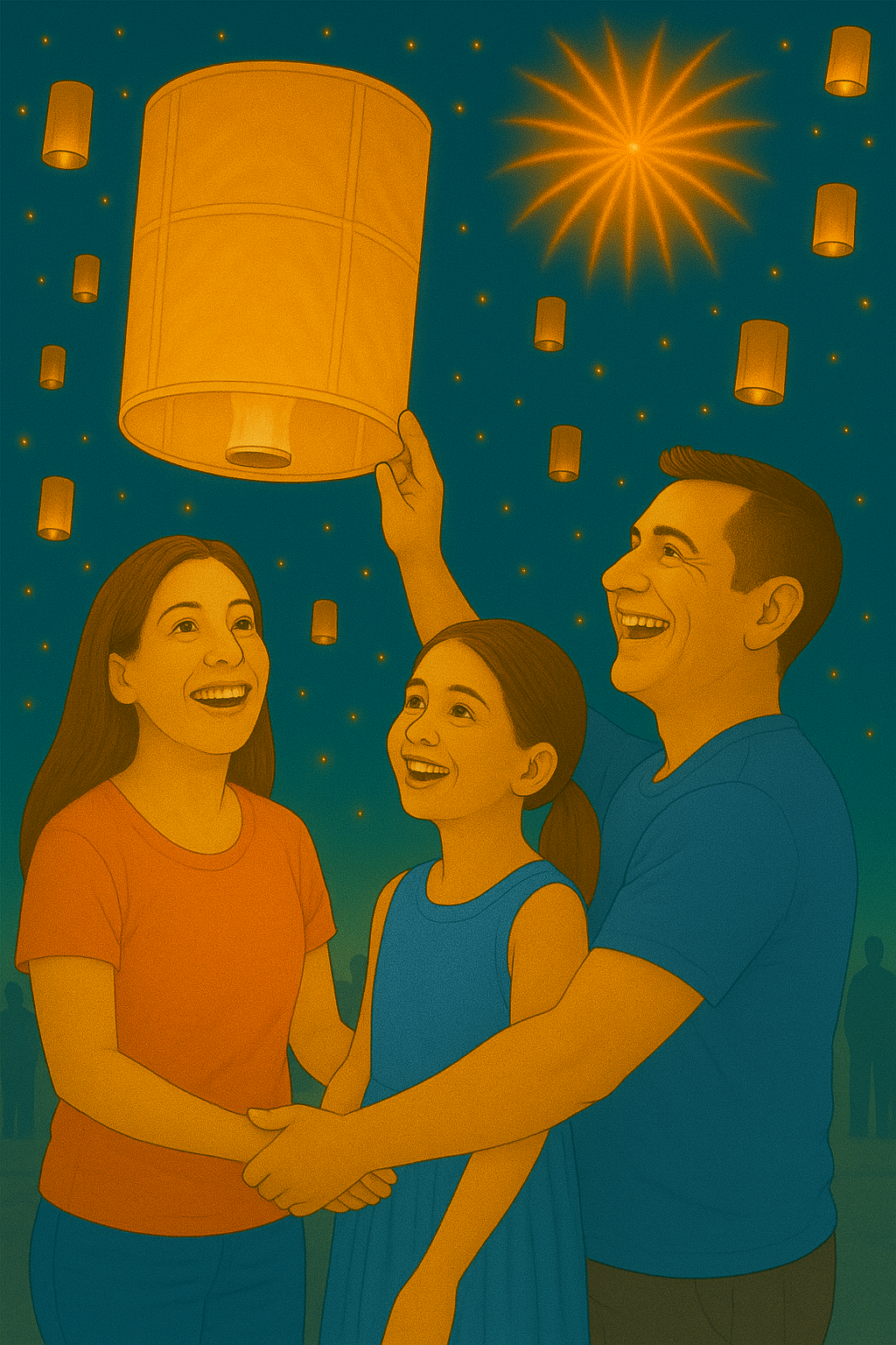 Lyktshowen börjar efter solnedgången för bästa synlighet och effekt.